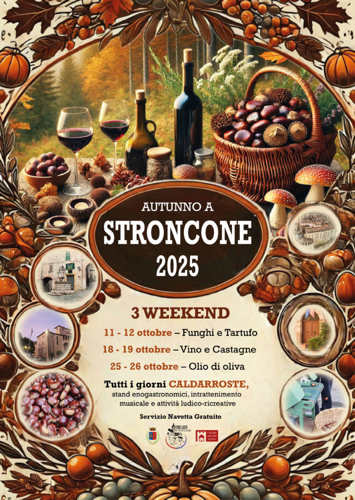 L’edizione 2025 si svolgerà nei weekend dell’11-12, 18-19 e 25-26 ottobre, trasformando il centro storico di Stroncone in una vera e propria festa d’autunno.