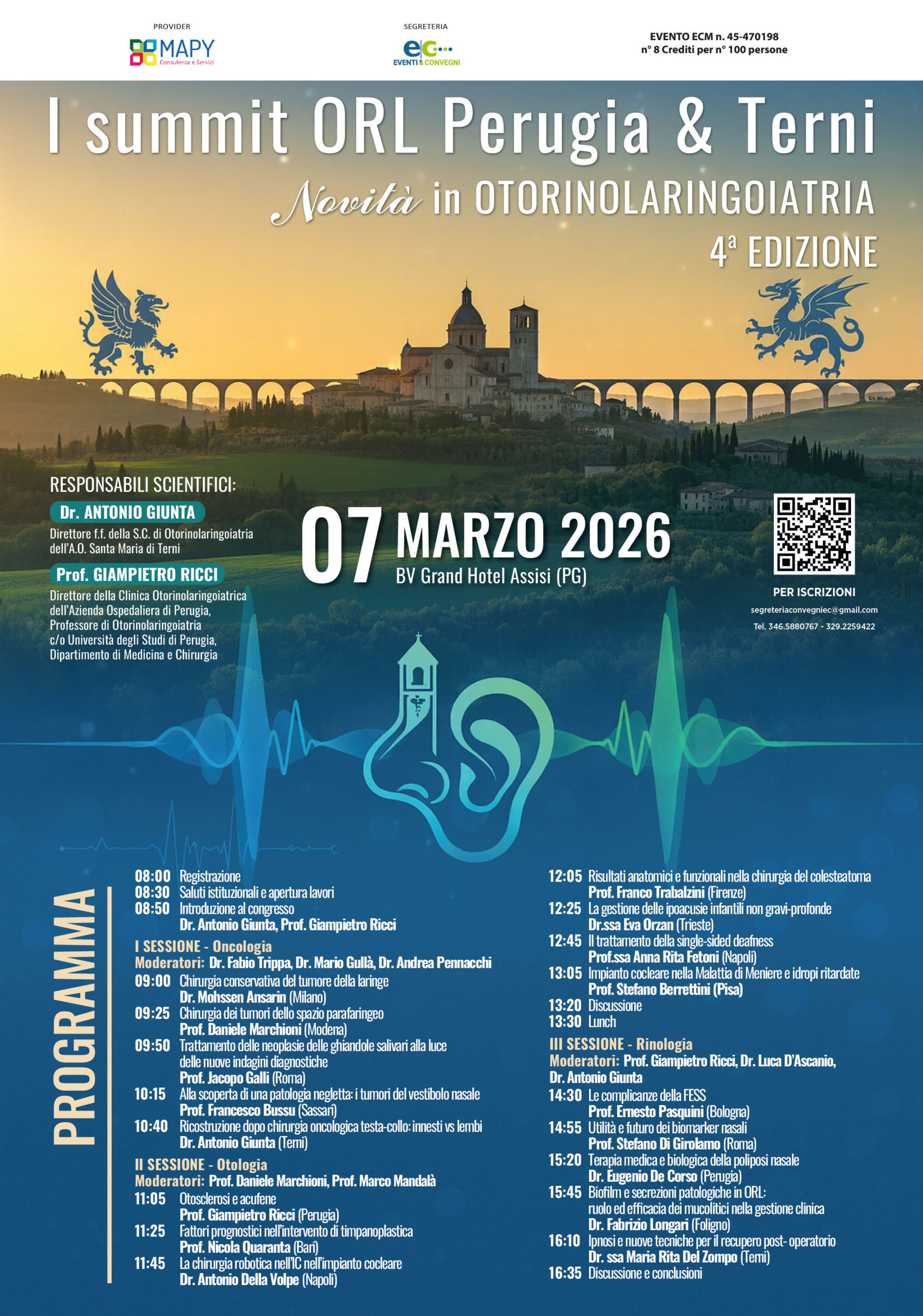 Prof. Giampietro Ricci – Direttore della Clinica Otorinolaringoiatrica dell’Azienda Ospedaliera di Perugia, Professore di Otorinolaringoiatria c/o Università degli Studi di Perugia, Dipartimento di Medicina e Chirurgia