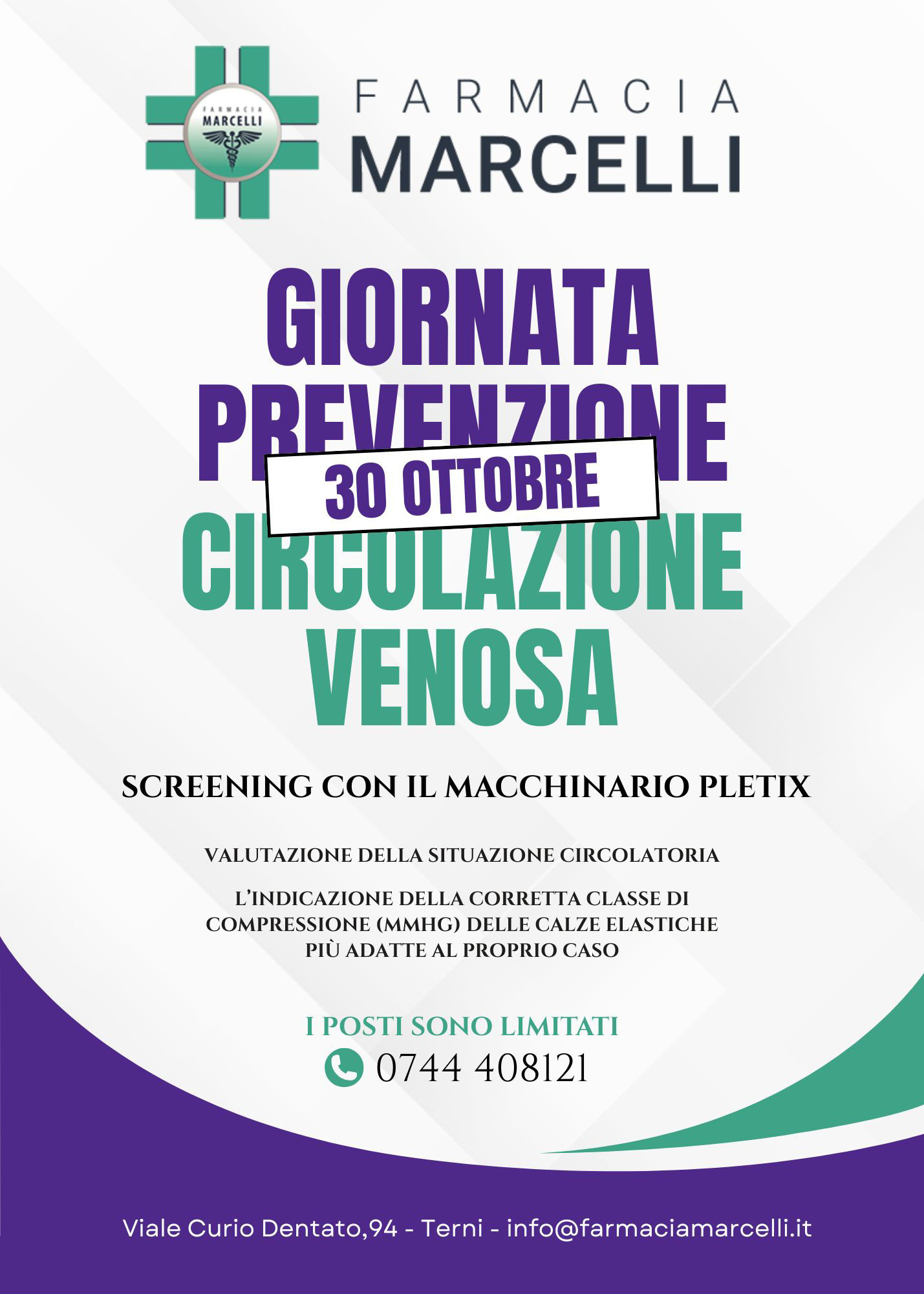 Mercoledì 30 ottobre 2025, presso la Farmacia di Viale Curio Dentato, 94 – Terni, si terrà la Giornata della Prevenzione Circolazione, un’iniziativa dedicata alla salute cardiovascolare e alla sensibilizzazione sull’importanza del controllo del sistema circolatorio.