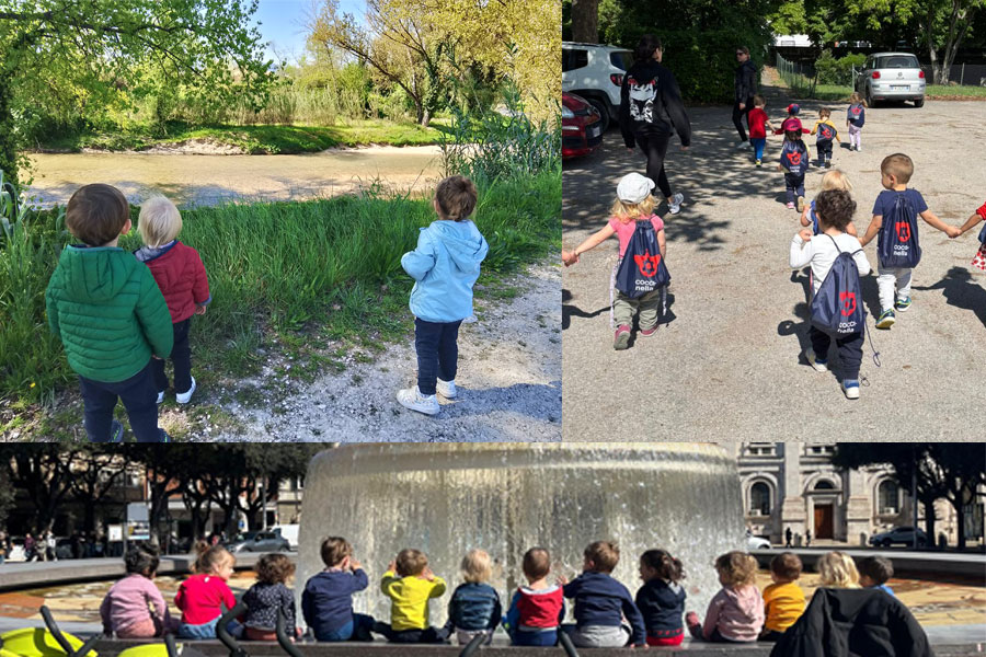 Gli spazi esterni sono luoghi di esplorazione, di relazione socio-affettiva, per connettere i bambini con il mondo che li circonda, aiutarli a capire il loro posto all’interno di una rete più ampia di persone, luoghi e risorse. L’Outdoor Education promuove la conoscenza del territorio, la collaborazione, la scoperta e il senso di appartenenza.