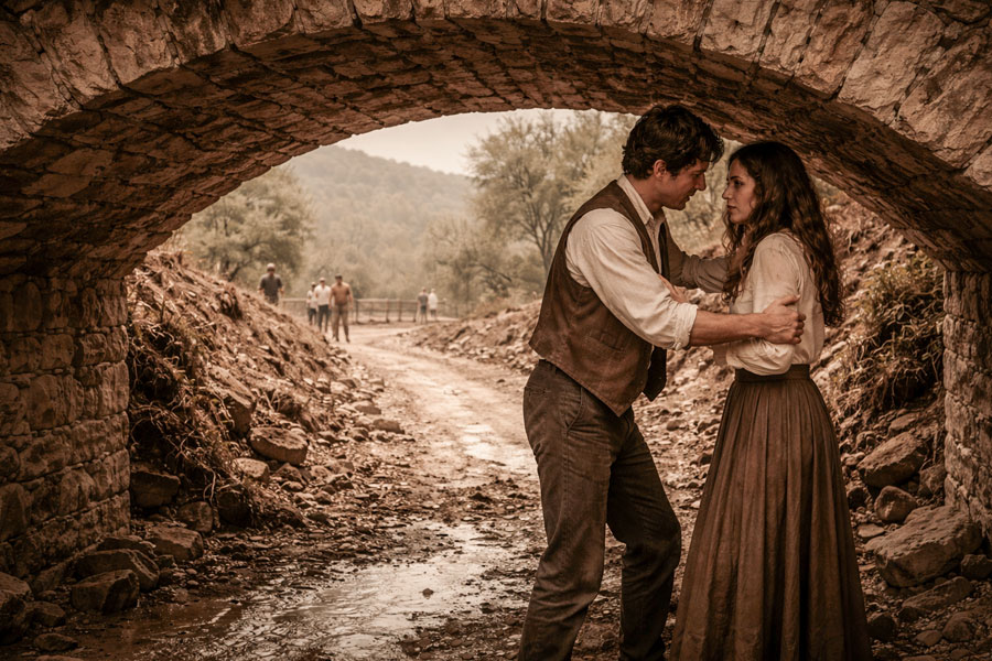 Sotto al ponticello doveva passare l’acqua di scolo raccolta ai lati della nuova strada e poi convogliata verso un torrente. Mentre Marcuccio stava possedendo la donna questa si sfilò un pugnale dalla manica e tentò di infilarlo nella pancia nuda dell’uomo.